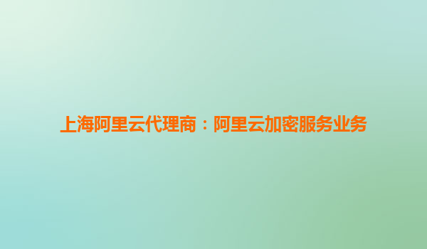 上海阿里云代理商:全面了解阿里云加密服務(wù)業(yè)務(wù)