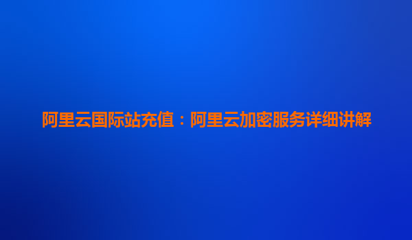 阿里云國際站充值:阿里云加密服務(wù)詳細(xì)講解