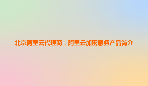 北京阿里云代理商:阿里云加密服務(wù)產(chǎn)品簡介