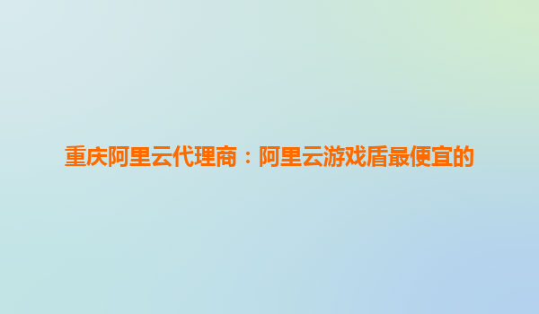 重慶阿里云代理商:阿里云游戲盾最便宜的解決方案