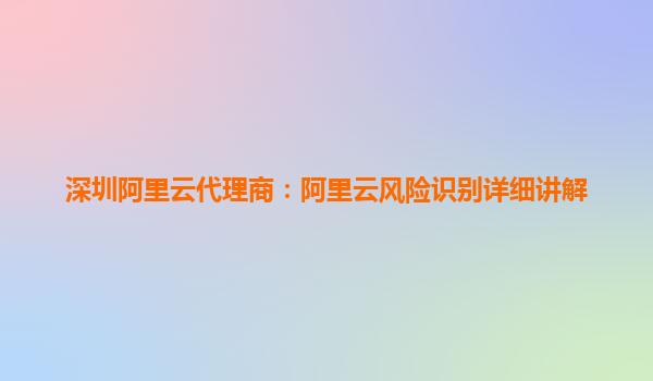 深圳阿里云代理商:阿里云風險識別詳細講解