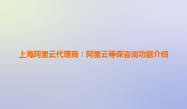 上海阿里云代理商:阿里云等保咨詢功能介紹