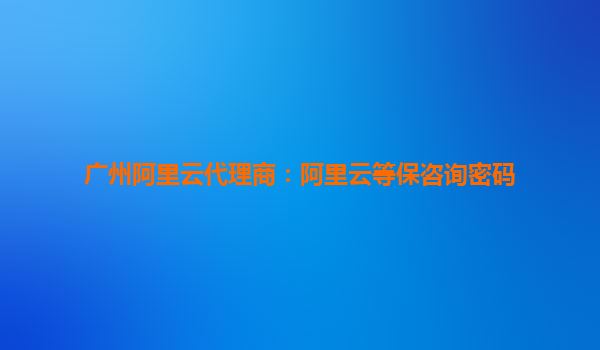 廣州阿里云代理商:阿里云等保咨詢密碼