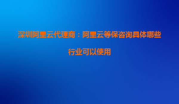 深圳阿里云代理商:阿里云等保咨詢具體哪些行業(yè)可以使用