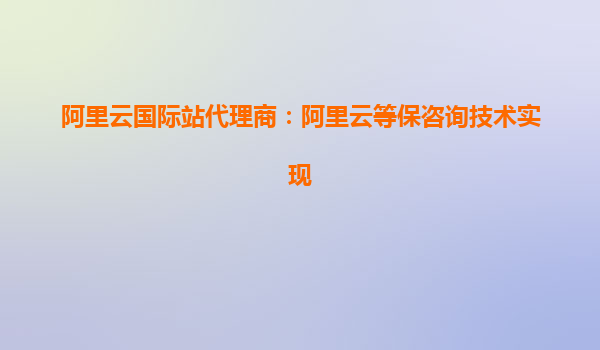 阿里云國際站代理商:阿里云等保咨詢技術(shù)實現(xiàn)