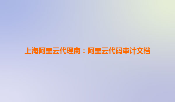 上海阿里云代理商:阿里云代碼審計文檔