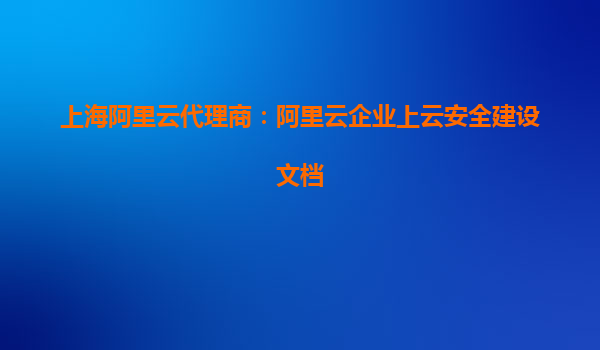 上海阿里云代理商:阿里云企業(yè)上云安全建設(shè)文檔