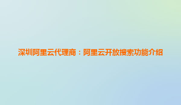 深圳阿里云代理商:阿里云開放搜索功能介紹