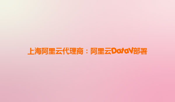 上海阿里云代理商:阿里云DataV部署