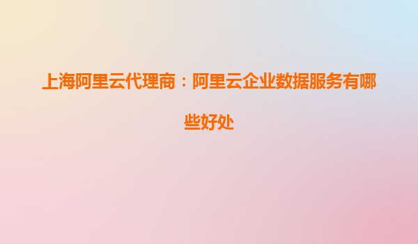 上海阿里云代理商:阿里云企業(yè)數(shù)據(jù)服務(wù)的好處