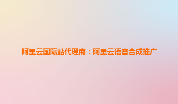 阿里云國際站代理商:阿里云語音合成推廣