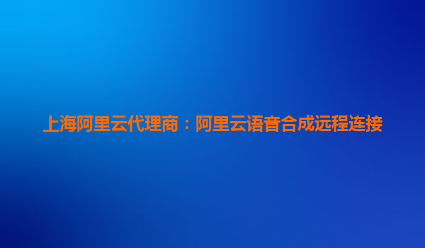 上海阿里云代理商:阿里云語音合成遠(yuǎn)程連接的優(yōu)勢與好用之處