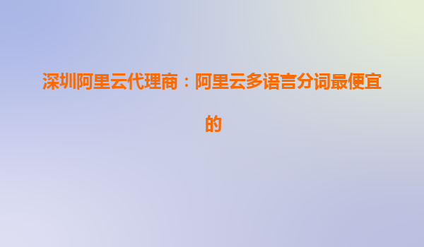 深圳阿里云代理商:阿里云多語言分詞最便宜的