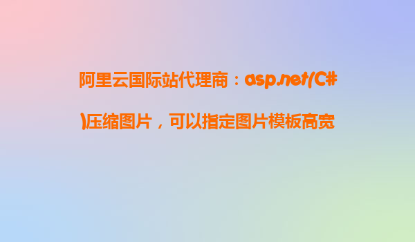 阿里云國(guó)際站代理商:ASP.NET(C#)圖片壓縮技術(shù)全面解析