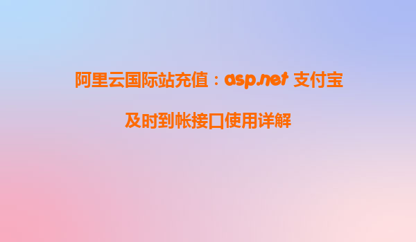阿里云國際站充值:ASP.NET 支付寶及時(shí)到帳接口使用詳解