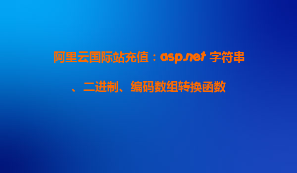 阿里云國際站充值:ASP.NET字符串、二進(jìn)制、編碼數(shù)組轉(zhuǎn)換函數(shù)詳解
