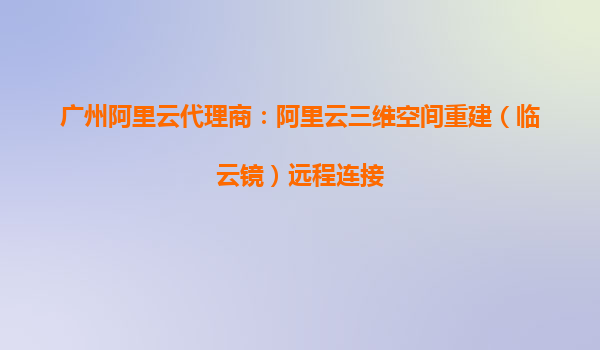 廣州阿里云代理商:阿里云三維空間重建(臨云鏡)遠(yuǎn)程連接應(yīng)用解析