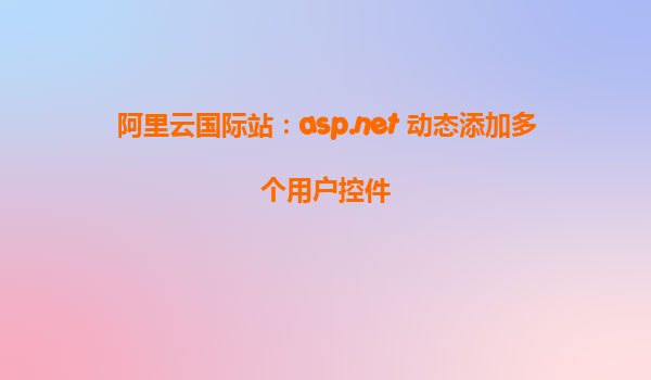 阿里云國際站:ASP.NET 動態(tài)添加多個用戶控件解析與阿里云平臺優(yōu)勢分析