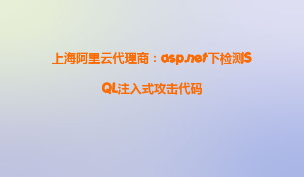 上海阿里云代理商:ASP.NET環(huán)境下檢測SQL注入攻擊的高效方案