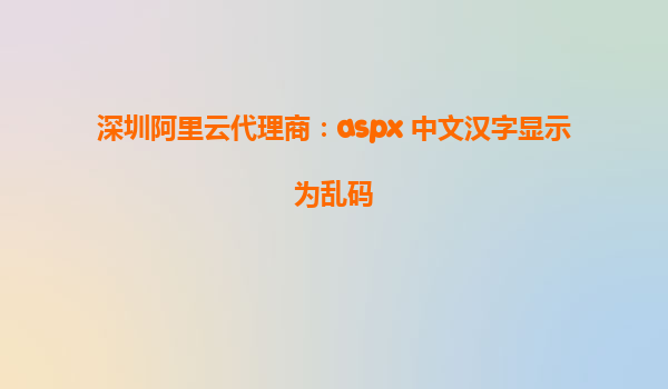 深圳阿里云代理商:aspx 中文漢字顯示為亂碼解決方案與阿里云優(yōu)勢分析