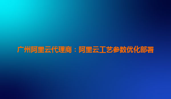 廣州阿里云代理商:阿里云工藝參數(shù)優(yōu)化部署的卓越實踐