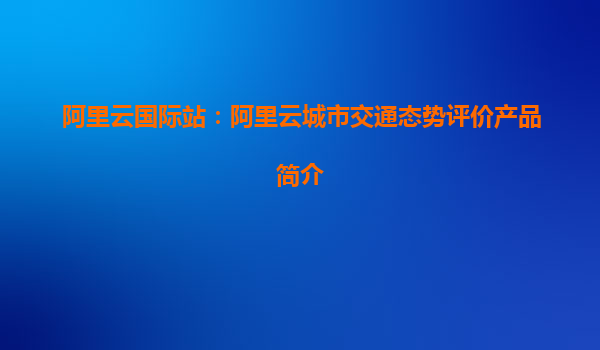 阿里云城市交通態(tài)勢(shì)評(píng)價(jià)產(chǎn)品:驅(qū)動(dòng)智慧交通新未來