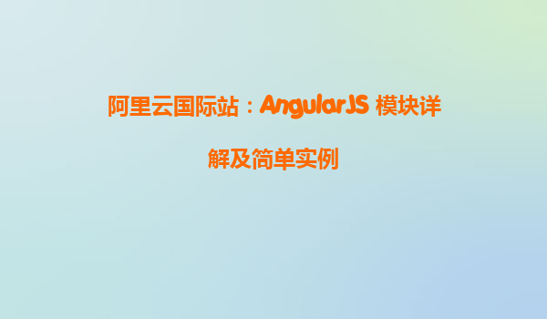 阿里云國際站:AngularJS模塊詳解及實戰(zhàn)指南