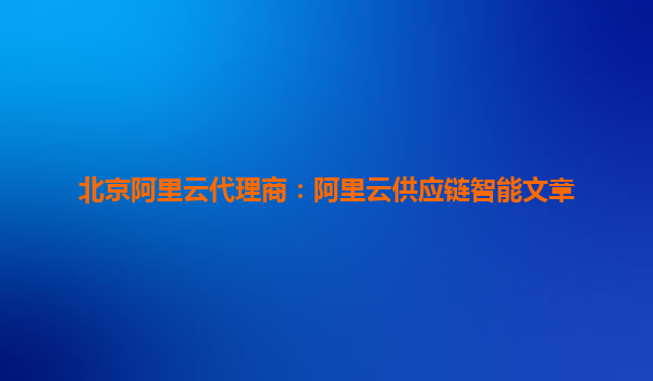 北京阿里云代理商:阿里云供應(yīng)鏈智能賦能企業(yè)數(shù)字化轉(zhuǎn)型