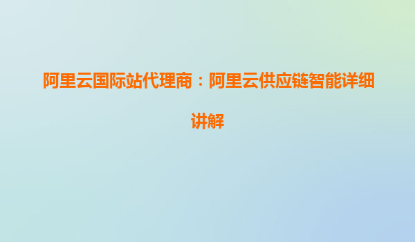 阿里云國(guó)際站代理商:阿里云供應(yīng)鏈智能解決方案深度解析