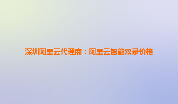 深圳阿里云代理商:阿里云智能雙錄價(jià)格解析與核心優(yōu)勢(shì)
