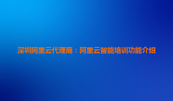 深圳阿里云代理商:阿里云智能培訓功能介紹