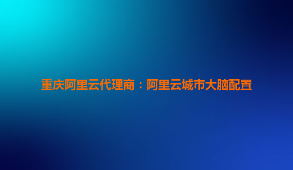 重慶阿里云代理商:賦能智慧山城,解析阿里云城市大腦配置
