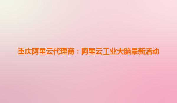 重慶阿里云代理商:阿里云工業(yè)大腦最新活動(dòng)