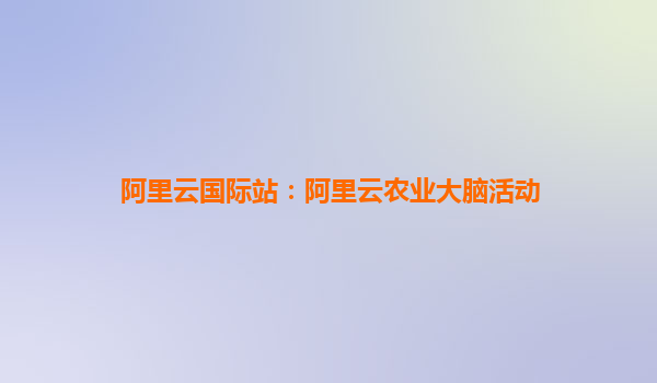 阿里云國(guó)際站:阿里云農(nóng)業(yè)大腦,賦能現(xiàn)代農(nóng)業(yè)數(shù)字化轉(zhuǎn)型