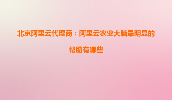 北京阿里云代理商:阿里云農(nóng)業(yè)大腦最明顯的幫助有哪些