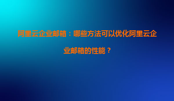 阿里云企業(yè)郵箱性能優(yōu)化指南