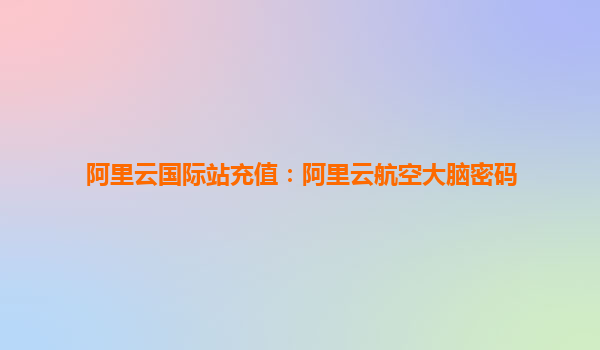 阿里云國際站充值:解鎖阿里云航空大腦的智能密碼