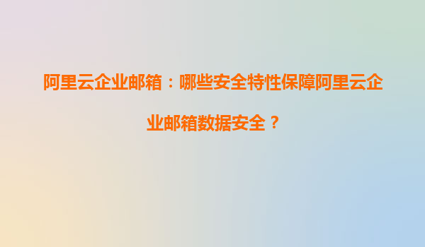 一、阿里云企業(yè)郵箱的核心安全特性