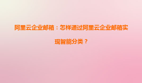 阿里云企業(yè)郵箱:怎樣通過阿里云企業(yè)郵箱實(shí)現(xiàn)智能分類?