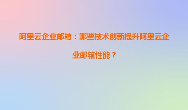 阿里云企業(yè)郵箱:哪些技術(shù)創(chuàng)新提升阿里云企業(yè)郵箱性能?
