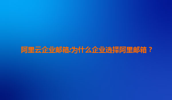 為什么企業(yè)選擇阿里郵箱?
