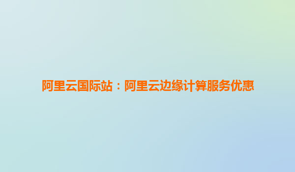 阿里云國際站:阿里云邊緣計算服務優(yōu)惠