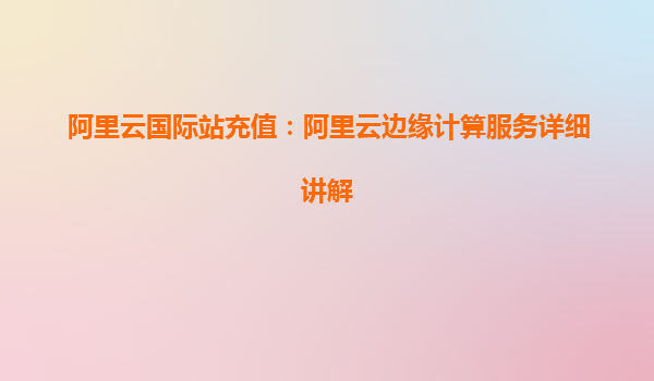 阿里云國際站充值:阿里云邊緣計算服務(wù)詳細講解