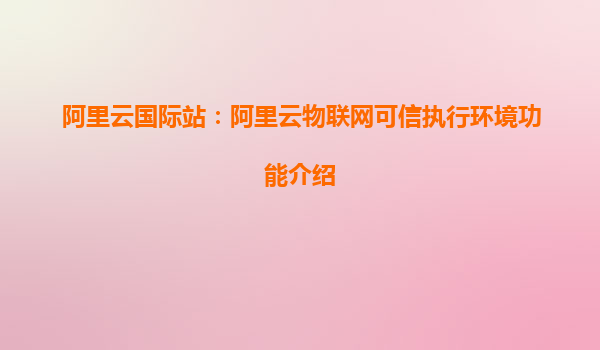 阿里云國際站:阿里云物聯(lián)網(wǎng)可信執(zhí)行環(huán)境(TEE)功能介紹