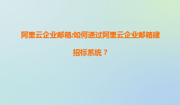 如何通過(guò)阿里云企業(yè)郵箱構(gòu)建高效招標(biāo)系統(tǒng)