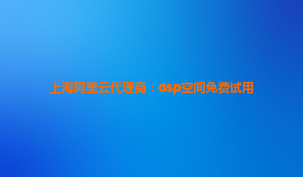 上海阿里云代理商:ASP空間免費(fèi)試用,助力企業(yè)輕松上云