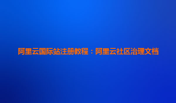 阿里云國際站注冊教程:阿里云社區(qū)治理文檔