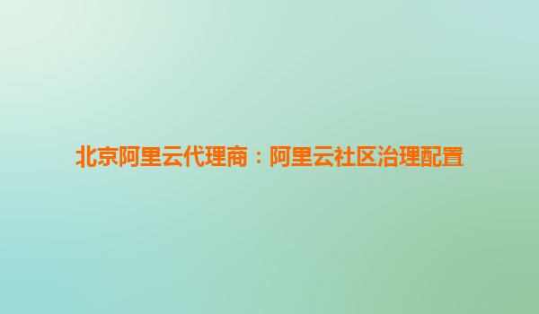 北京阿里云代理商:阿里云社區(qū)治理配置的核心優(yōu)勢(shì)與實(shí)踐