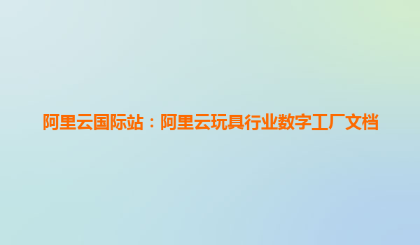 阿里云玩具行業(yè)數(shù)字工廠解決方案:驅(qū)動產(chǎn)業(yè)智能化升級