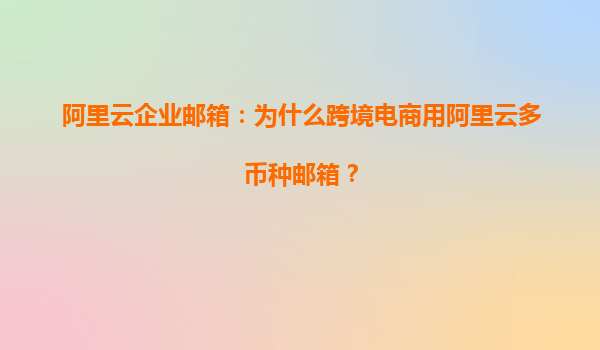阿里云企業(yè)郵箱:為什么跨境電商用阿里云多幣種郵箱?